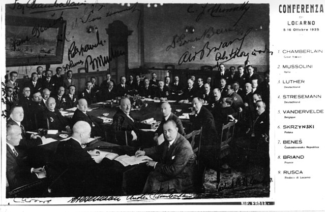 Nel periodo, che stiamo esaminando, si regista qualche tentativo per rendere più solida l’unità europea, soprattutto nella fase che precede la crisi del 1929. Certamente da evidenziale nel 1925 la conferenza di Locarno, che porta alla sottoscrizione dell’omonimo trattato. Questa conferenza vede coinvolte con un ruolo di primo piano la Francia, la Germania, l’Italia e la Gran Bretagna con lo scopo di rendere più sicure le frontiere e di conseguenza per creare anche maggiore sintonia tra due stati, Francia e Germania che nella prima guerra mondiale si sono collocati su posizioni contrapposte. I due capi di governo, il francese Briant ed il tedesco Stresemann, definiti da qualche storico “ Angeli della pace” escono da questa conferenza convinti assertori della necessità di creare un unione europea. Prende consistenza in questo periodo l’idea di una federazione europea e nasce un movimento per sostenere questa idea , con presidente il francese Briant .