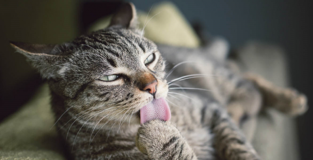 Si sa che i gatti sono animali molto puliti e che passano delle ore a leccarsi il pelo e questa loro lingua gli permette di agire come una spazzola nella fase di toelettatura. La composizione della lingua felina aiuta a pulire il pelo in profondità e a pettinarlo, estraendone detriti e peli morti ed altre cose che potrebbero essersi impigliate nel mantello. Purtroppo, però, attraverso questa funzione la lingua del gatto raccoglie i peli morti – formando le classiche palle di pelo o boli di pelo – e li spinge verso la gola, facendoglieli così inghiottire e spesso questo li porta ad avere problemi se non vengono espulsi normalmente mediante la defecazione.