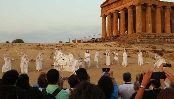 AGRIGENTO. Conosciuta come “Città dei templi”, Agrigento ha una storia antica, che risale al 580 a.C., anno della sua fondazione. Raggiunto il massimo splendore nel V secolo a.C., nel corso delle guerre puniche fu conquistata dai Romani, poi dagli Arabi, e quindi dai Normanni. La sua bellezza storica l’ha inserita tra i patrimoni Unesco dell’umanità, grazie alla distesa di templi dorici dell’antica città greca che si trovano nella valle dei Templi. E proprio qui, nel Parco dei Templi di Agrigento, l’estate fa risorgere dei ed eroi in carne e ossa, pronti a raccontare le storie dei miti greci. Tutto ciò accade all’alba, quando, alle ore 5, gli archeologi e le guide del parco accompagnano i turisti in una passeggiata lungo l’antica strada che congiunge i due templi maggiori. «I templi venivano intonacati, e poi dipinti con uno stucco bianco al quale era mescolata polvere di marmo per renderli lucenti come pietra, mentre i colori, probabilmente blu, rosso e tocchi di giallo venivano usati per il frontone, i capitelli, i collari delle colonne», spiega uno dei giovani archeologi di Coopculture, la società che gestisce i servizi offerti dal parco archeologico.
