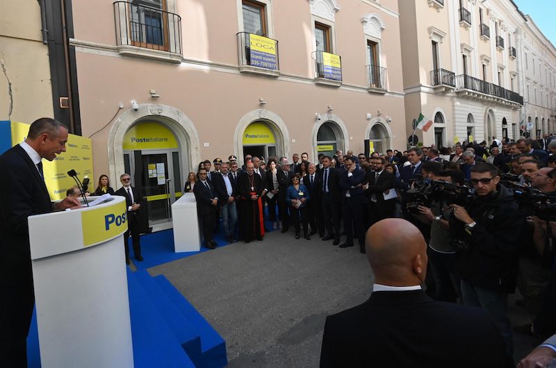 L’AQUILA. Poste Italiane torna, a dieci anni dal sisma dell’Aquila, nel centro storico del capoluogo abruzzese con una struttura all’avanguardia. E’ stato l’amministratore delegato Matteo Del Fante a inaugurare il nuovo ufficio “L’Aquila Centro Storico” in corso Vittorio Emanuele II, nel corso di un evento davanti alla nuova sede, presenti, tra gli altri, il ministro dello Sviluppo economico Stefano Patuanelli, il presidente della Regione Abruzzo Marco Marsilio e il sindaco dell’Aquila, Pierluigi Bondi. “Siamo felici – ha spiegato l’Ad di Poste – di aver riaperto un nostro ufficio postale in pieno centro storico, contribuendo alla rinascita di una bellissima città e in particolare del suo nucleo urbano più antico”.