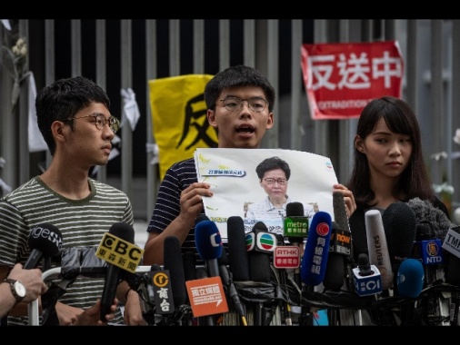 I tre rappresentanti del Parlamento locale finiti nella custodia della polizia sono Au Nok-hin, Jeremy Tam e Cheng Chung-tai. Lo ha reso noto il Civic Party. Au Nok-hin e Jeremy Tam sono stati arrestati per il sospetto di ostruzione all’attività della polizia: Au, in particolare, secondo il resoconto dei media locali è accusato di aver assalito un agente. Qualche ora prima era già stato arrestato Cheng Chung-tai, a capo di Civic Passion. Cheng, secondo quanto detto da Civic Passion su Facebook, è stato fermato mentre si dirigeva a Tin Shui Wai per partecipare a un evento. Confermando l’arresto di un 35enne di nome Cheng, la polizia ha spiegato che l’accusa è di “cospirazione nel causare danni perseguibili penalmente” in merito all’assalto del parlamento di luglio. Tornando ai due attivisti liberati su cauzione, Wong era stato arrestato secondo le prime informazioni per tre contestazioni, tra cui cui figura l’istigazione a partecipare a manifestazioni illegali. “Il nostro segretario generale è stato arrestato questa mattina intorno alle 7:30 mentre stava camminando verso la stazione della metropolitana di South Horizons. E’ stato costretto con la forza a entrare in un minivan privato sulla strada e alla luce del giorno. I nostri avvocati stanno seguendo il caso”, ha scritto Demosisto su Twitter, prima della liberazione. Wong è stato tra i leader del ‘movimento degli ombrelli’, la grande mobilitazione di massa pro-democrazia che per 79 giorni nel 2014 bloccò il centro dell’ex colonia. Agnes Chow “è stata condotta al quartier generale della polizia di Wan Chai, dove è detenuto Joshua Wong”, ha fatto sapere ancora Demosisto. L’arresto di Wong e Chow sembra essere parte di un piano più ampio di reazione alle proteste alla vigilia del tredicesimo weekend di mobilitazioni pro-democrazia. Mobilitazione che potrebbe non esserci dato che i promotori del gruppo Civil Human Rights, che fin qui avevano portato in piazza anche due milioni di persone in maniera pacifica, hanno detto di non aver avuto altra scelta che annullare la marcia per il timore riguardo l’incolumità dei partecipanti. Non è ancora chiaro se i manifestanti troveranno un modo alternativo per esprimere il loro dissenso. Dopo l’arresto da parte della polizia, per Joshua Wong e Agnes Chow è stata ottenuta la liberazione su cauzione. Su entrambi tuttavia restano pendenti severe misure restrittive: dal divieto di circolazione tra le 23 e le 7, al divieto di ingresso nell’area dell’Admiralty, il centro dell’ex colonia dove si sono tenute le più grandi mobilitazioni contro la legge sulle estradizioni in Cina. Dunque una libertà fortemente vigilata che non placherà il dissenso dilagante per la durezza della polizia. Tuttavia centinaia di persone si sono radunate nel primo pomeriggio al Southorn Playground di Wan Chai per un nuovo ciclo di proteste con tanto di corteo, malgrado la polizia di Hong Kong abbia negato l’autorizzazione a manifestare per i timori sulla sicurezza al Civil Human Rights Front, il gruppo delle mobilitazioni di massa. Gli organizzatori dell’evento hanno parlato di raduno religioso che non prevede un via libera. Le autorità dell’ex colonia hanno bloccato il servizio di trasporto pubblico di superficie e della metropolitana intorno alla sede di rappresentanza della Cina. La tensione è alta ormai da un paio di mesi a Hong Kong. Tutto è partito, a giugno, con la protesta contro la legge sull’estradizione forzata in Cina poi ritirata dalla governatrice Carrie Lam. I manifestanti hanno a più riprese avanzato richieste di garanzie per la libertà, che a detta dei dissidenti vanno progressivamente assottigliandosi via via che la presa da parte della Cina  si fa più stringente. Più volte, nelle ultime settimane, si sono verificati scontri fra forze dell’ordine e attivisti. Decine di persone sono state arrestate a causa delle proteste.