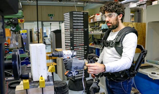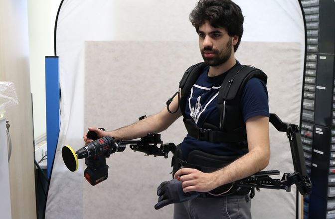 Ieri, alla vigilia della festa dei lavoratori, è proprio il rumore di un trapano ad annunciare l’avvio dei primi test del dispositivo nato dalla collaborazione tra i laboratori Hrii (Human Robot Interfaces and physical Interaction) e SoftBots (Soft Robotics for Human Cooperation and Rehabilitation), coordinati rispettivamente da Arash Ajoudani e Antonio Bicchi. Nel laboratorio tutto ruota intorno al comfort del lavoratore, come ci tengono a far notare i ricercatori, mostrando robot che monitorano la fatica fisica dell’uomo e ne prevedono i movimenti in modo da adattarsi alle sue attività, consentendogli di lavorare in maniera più ergonomica possibile.