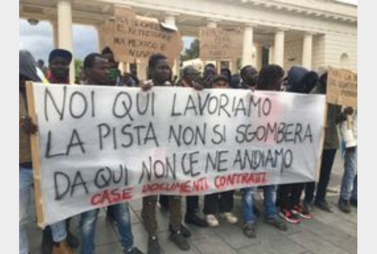 Alla manifestazione, organizzata dal collettivo ‘Campagne in lotta’, partecipano i braccianti che vivono a Borgo Mezzanone, a pochi chilometri da Foggia, nella baraccopoli abusiva sorta accanto al Centro richiedenti asilo. “Vogliamo i documenti”,”Vogliamo un lavoro e una vita normale”, dicono i migranti che fra poco attraverseranno le vie del centro città per raggiungere la prefettura.