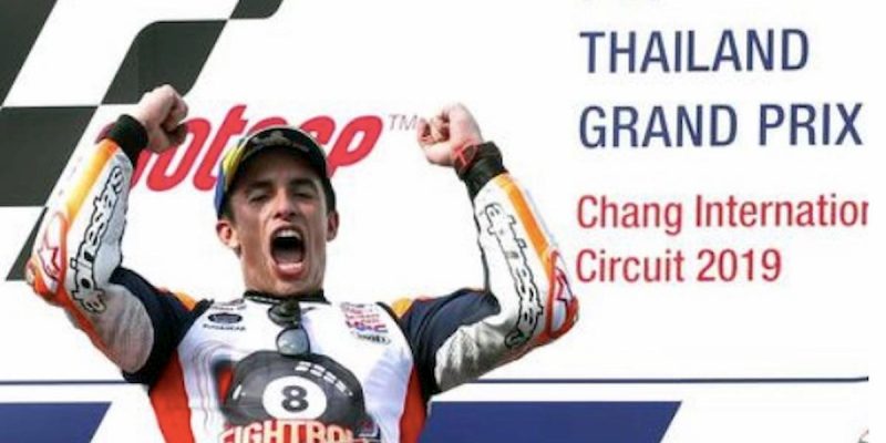 Il pilota 26enne conquista così l’ottavo titolo mondiale in carriera, il sesto titolo nella classe regina, a quattro corse dalla fine del campionato. Ancora una delusione in Thailandia per Valentino Rossi, giunto ottavo al traguardo. Marquez non sbaglia il primo match point e corona nel modo migliore una stagione di dominio assoluto dove ha conquistato 9 vittorie e 4 secondi posti in 15 gare. Eguagliato il Dottore per numero di titoli in MotoGp, il traguardo dei 9 titoli complessivi di Rossi è a un passo.