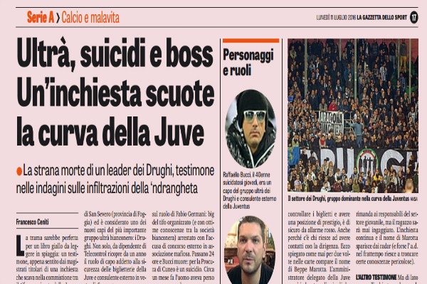 CUNEO. E’ stata riesumata dal cimitero di Cuneo, dove era sepolta, la salma di Raffaello Bucci, l’ ultrà della Juventus morto cadendo dal viadotto di Fossano, nel luglio del 2016. Pochi giorni prima era stato interrogato dalla procura di Torino per i rapporti tra ‘ndrangheta e ultrà.