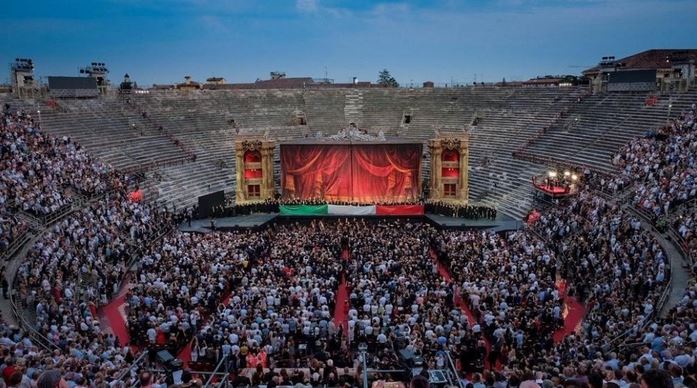 All’Arena non sono mancate numerose personalità, a partire dal presidente della Repubblica, Sergio Mattarella, accompagnato dalla figlia Laura e accolto con un caloroso applauso. In platea anche la presidente del Senato, Maria Elisabetta Alberti Casellati, il ministro per i Beni e le attività culturali, Alberto Bonisoli, il ministro dell’Economia Giovanni Tria e il ministro del Turismo Gian Marco Centinaio. Lo spettacolo è stato trasmesso da Rai1 in diretta in mondovisione, con un allestimento kolossal e il tutto esaurito. Per l’occasione la Rai ha reso disponibile il segnale free a tutte le emittenti del mondo.