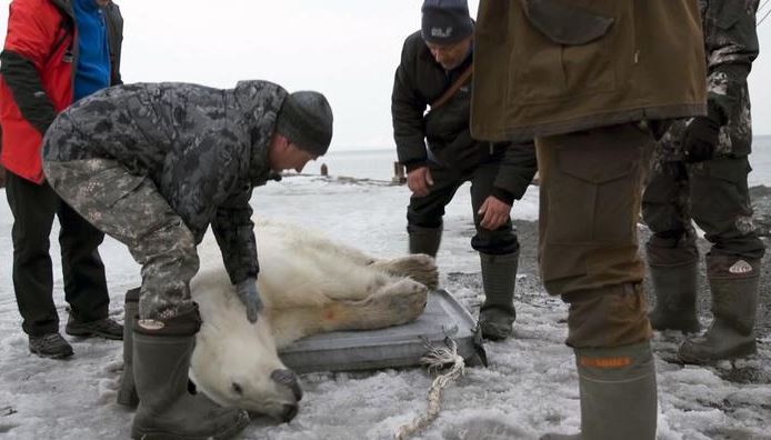 Sembra che l’animale, evidentemente esausto, fosse giunto nel villaggio della Kamchatka su un iceberg dalla remota Chukotka, circa 700 chilometri più a nord. La Protezione civile russa ha quindi organizzato una spedizione per riportarlo a casa. E’ stato prima sparato un tranquillante all’animale, caricato poi, dentro un container, a bordo di un elicottero diretto alla sua nevosa Chukotka, dove è stato lasciato libero.