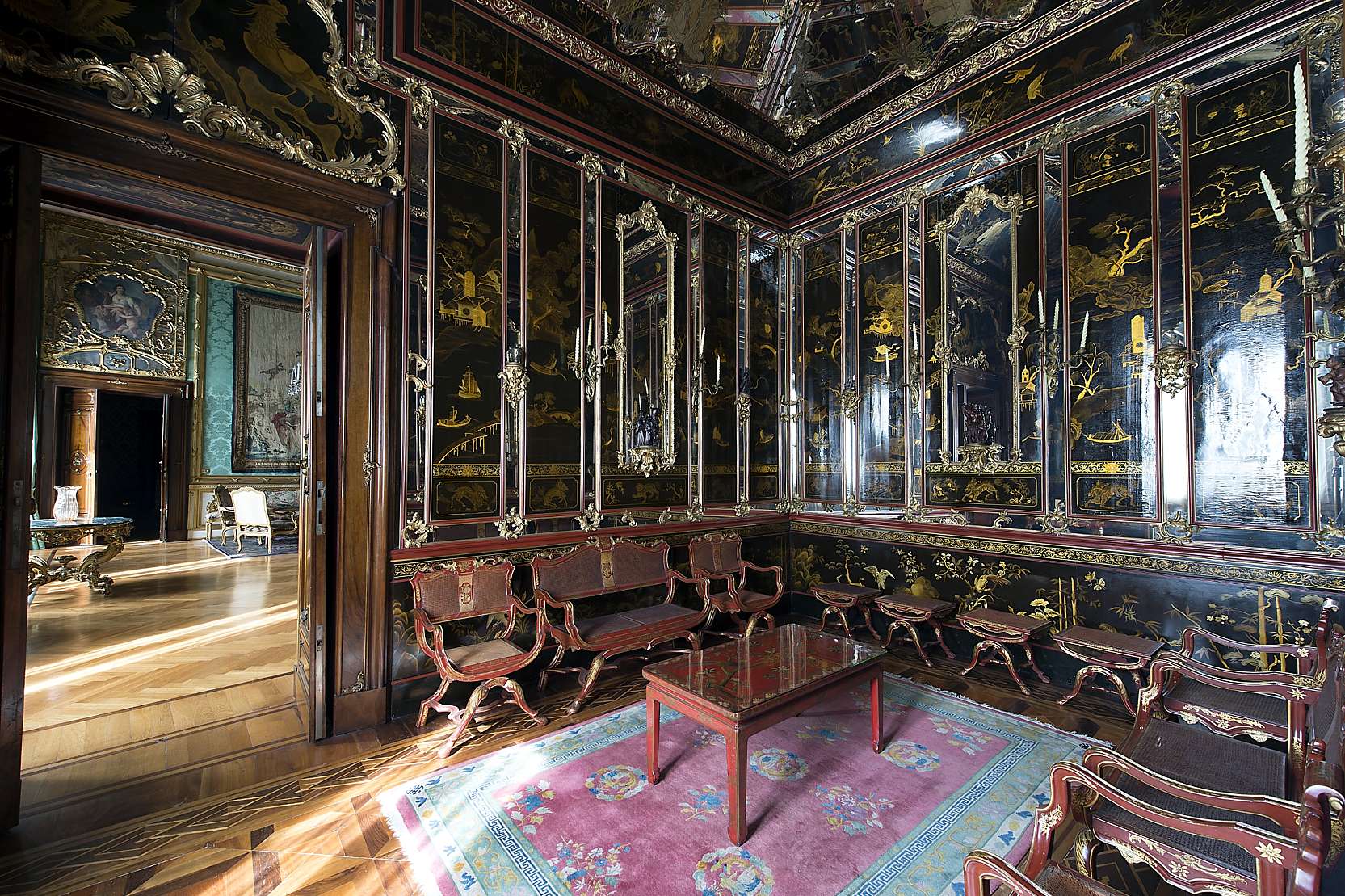 Lo splendore della struttura è dato, inoltre, dai quattro ettari di giardini composti da numerose specie arboree, oltre alla magnificenza dei viali e del Boschetto. All’interno, i pezzi più antichi della collezione del Quirinale sono quattro carrozze, delle 105, della storia sabauda. Oggetti antichi come porcellane, statue, e orologi compongono gli arredi. Si trovano, infatti, una grande quantità di pendole in prevalenza francesi risalenti alla fine del XVII secolo e fino all’ultimo decennio dell’Ottocento, statue d’ispirazione divina e mitologica nei giardini, due urne in alabastro provenienti dalle collezioni estensi di Modena, mobilia di manifattura francese, console, finimenti di divani e poltrone, candelieri, e molto altro.