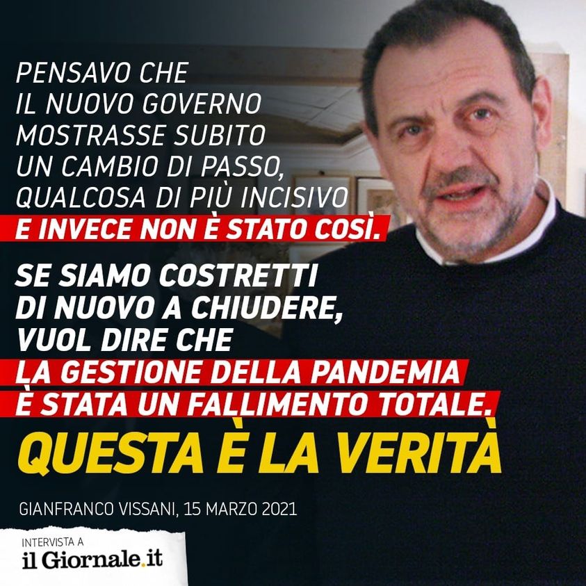Anche lo chef Vissani interviene sulla questione ristori inesistenti e ristoranti al collasso: ” “Noi ristoratori siamo al collasso. È difficile per tutti, figuriamoci per chi ha locali in piccole realtà di provincia. Ci sono le utenze da pagare, gli affitti… insomma le spese corrono, ma le entrate stanno a zero”. E’ la stessa Giorgia Meloni a postare un’immagine con la frase che lo Chef Vissani ha rilasciato nel corso della sua intervista al Giornale in cui dice: ‘Pensavo che il nuovo Governo mostrasse subito un cambio di passo, qualcosa di più incisivo e invece non é stato così. Se siamo costretti di nuovo a chiudere, vuol dire che la gestione della pandemia é stata un fallimento totale. Questa é la verità”