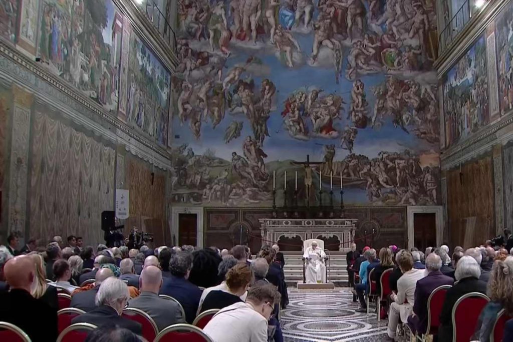 Il primo richiamo va fatto ricordando subito il luogo dell’incontro: la Cappella Sistina. Si tratta indubbiamente del locale più denso di storia artistica del Vaticano. Non solo, è il locale deputato, secondo una tradizione consolidata nei secoli, all’elezione del pontefice. Ricevere gli artisti qui significa rimarcare in modo importante il legame che è sempre intercorso tra chi viene chiamato a guidare la Chiesa e l’arte.