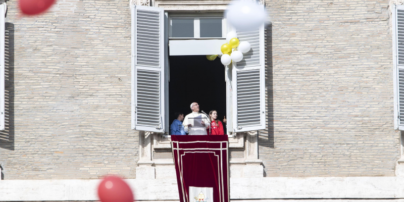 Per dare forza alle sue parole, Papa Francesco ha voluto accanto a se due ragazzi dell’Azione Cattolica giunti a piazza San Pietro con la Carovana della Pace, insieme a numerosi loro coetanei e al cardinale vicario Angelo De Donatis. Il Papa li ha incoraggiati a leggere un appello che essi stessi hanno sintetizzato con lo slogan “Vogliamo la pace!”. Hanno poi liberato dei palloncini in segno di pace. Papa Francesco ha lodato la carovana della Pace dicendo “Con questa iniziativa aprite i festeggiamenti per i 150 anni di fondazione dell’Azione Cattolica di Roma e i 50 anni della nascita dell’Acr – ha sottolineato – Vi auguro di essere gioiosi testimoni di pace e di fraternità”.
