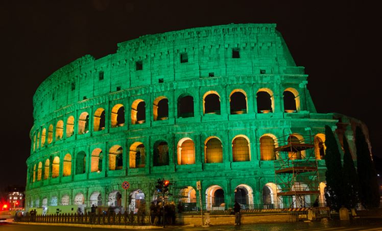 ROMA. Domenica 17 marzo tutto il mondo si illuminerà di verde in onore di San Patrizio, grazie all’iniziativa Global Greening, promossa da Turismo Irlandese. San Patrizio, per chi non lo sapesse è il patrono d’Irlanda e a lui tengono tantissimo nell’isola del Regno Unito. In Italia, in onore suo cambieranno colore il Colosseo e l’Ambasciata d’Irlanda a Roma, la Torre Pendente di Pisa, il Pozzo di San Patrizio, la Fortezza Albornoz e il Palazzo Municipale a Orvieto, Castel Nuovo (Maschio Angioino) e Castel dell’Ovo a Napoli, il Gazebo di Terrazza Mascagni e il Cisternino di città a Livorno, il Palazzo ex Convento dell’Annunziata a Matera, il Castello Aragonese e la Sala dei Bronzi di Riace nel Museo Archeologico di Reggio Calabria, la Cascata Isola del Liri (in provincia di Frosinone) e il Fidenza Village di Fidenza.