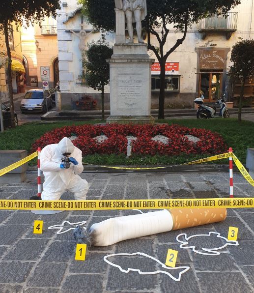Il progetto, ideato e realizzato dall’agenzia creativa Question Mark Communication, prevede, oltre alla campagna advertising, l’installazione di una vera e propria «scena del crimine» in cui, accanto alle vittime – raffigurate da sagome di pesci, tartarughe e stelle marine – è stata posta la riproduzione di un mozzicone gigante, simbolica arma del delitto. Una “scena” che evidenzia la grandezza di un problema di tutti, quale l’inquinamento, dovuto a piccoli gesti di ciascuno, come quello di gettare a terra un mozzicone. L’installazione ricorderà così ai passanti l’importanza di non rendersi autori di un “crimine”.