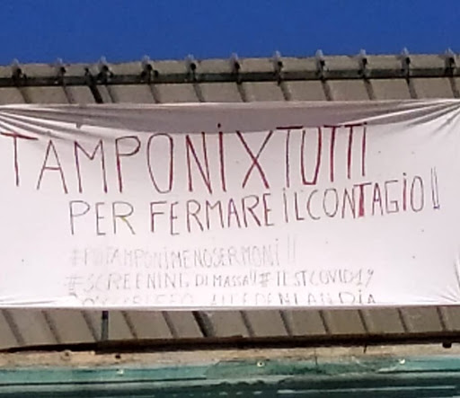 NAPOLI. Striscioni, anche davanti alle banche, alle metropolitane, ai luoghi di lavoro, sono stati affissi stamattina a Napoli dagli attivisti delle “Reti sociali napoletane nell’emergenza del Covid19”, “per rivendicare l’urgenza sempre più impellente delle misure di allargamento del diritto al reddito dei non garantiti, nuove norme sugli affitti, il rilancio della Sanità pubblica e della medicina di territorio insieme a un piano di screening sanitario di massa per tutelare il diritto alla salute”.