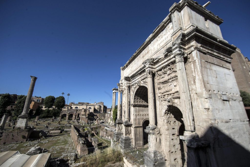 Uno scorcio dei Fori Imperiali a Roma. Sopra, Lamezia Terme