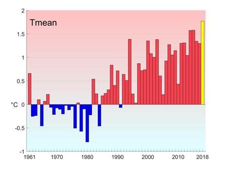 Tra le informazioni più rilevanti a livello mondiale, il 2018 è stato il 4° anno più caldo di sempre e gli anni dal 2015 al 2018 rappresentano i 4 anni più caldi dell’intera serie storica. Il contributo che viene fornito alla WMO da tutti gli stati membri, consiste nella compilazione di un modello in cui vengono riportati, in sintesi, dati e informazioni sull’andamento climatico nell’anno in corso, sia per quanto riguarda i valori medi di temperatura e precipitazione, che gli eventi meteorologici estremi (onde di calore, precipitazioni estreme, alluvioni, siccità, tempeste di vento, nevicate eccezionali). Inoltre, vengono messi a disposizione grafici e mappe rappresentativi delle anomalie (cioè degli scarti rispetto ai valori climatologici normali) di temperatura e precipitazione, nel corso del 2018.