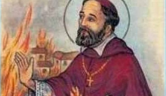Quel fatto prodigioso è ricordato anche con la descrizione di particolari, che rendono epica la sua azione. Nella ”Istoria d’Ancona”, scritta dall’Abate Antonio Leoni si legge che , “gli anconetani implorarono l’aiuto del loro vescovo. Mentre la moltitudine invano cerca di estinguere il fuoco che ha già divorato parte dell’abitato. Il santo vescovo, malato di podagra, si fa portare ove le fiamme sono più violente. Lì lesse un Evangeliario, che rimase bruciacchiato in alcune sue parti per un’improvvisa aggressione delle fiamme, che andarono spegnendosi nell’istante in cui il santo chiuse di colpo il libro, tra la gratitudine del popolo”.