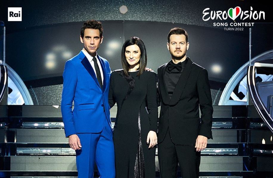 Da sinistra Mika, Laura Pausini e Alessandro Cattelan. Saranno i tre presentatori dell’Eurovision Song Contest 2022