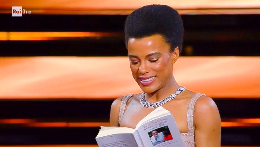 Accanto ad Amadeus stavolta non c’è Fiorello, ma l’attrice Lorena Cesarini di origini senegalesi, che con l’emozione di una giovane ragazza sul grande palco di Sanremo recita un monologo sul razzismo, in cui l’attrice spiega come i pregiudizi nascano dall’educazione che si riceve da bambini. Una performance che conquista il pubblico con parole forti ed emozionanti.