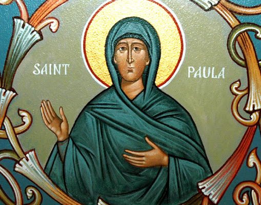 Santa Paola, di nobilissima famiglia senatoriale, rinunciò alle agiatezze e distribuite le sue sostanze ai poveri, insieme alla figlia, si ritirò nel monastero che aveva costruito a Betlemme.