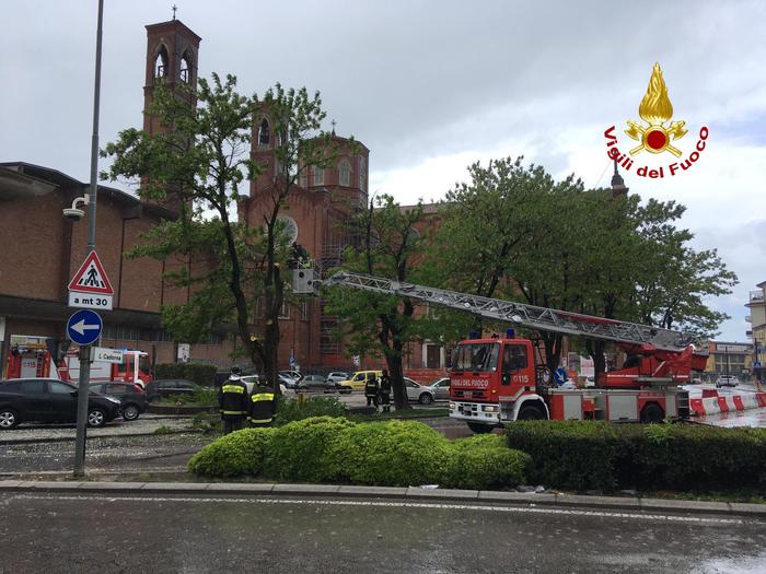 VICENZA. Sono una decina gli interventi dei vigili del fuoco per il maltempo che nelle ultime ore ha colpito la provincia di Vicenza. L’intervento più importante c’è stato per il distacco della croce dal campanile di Santorso.