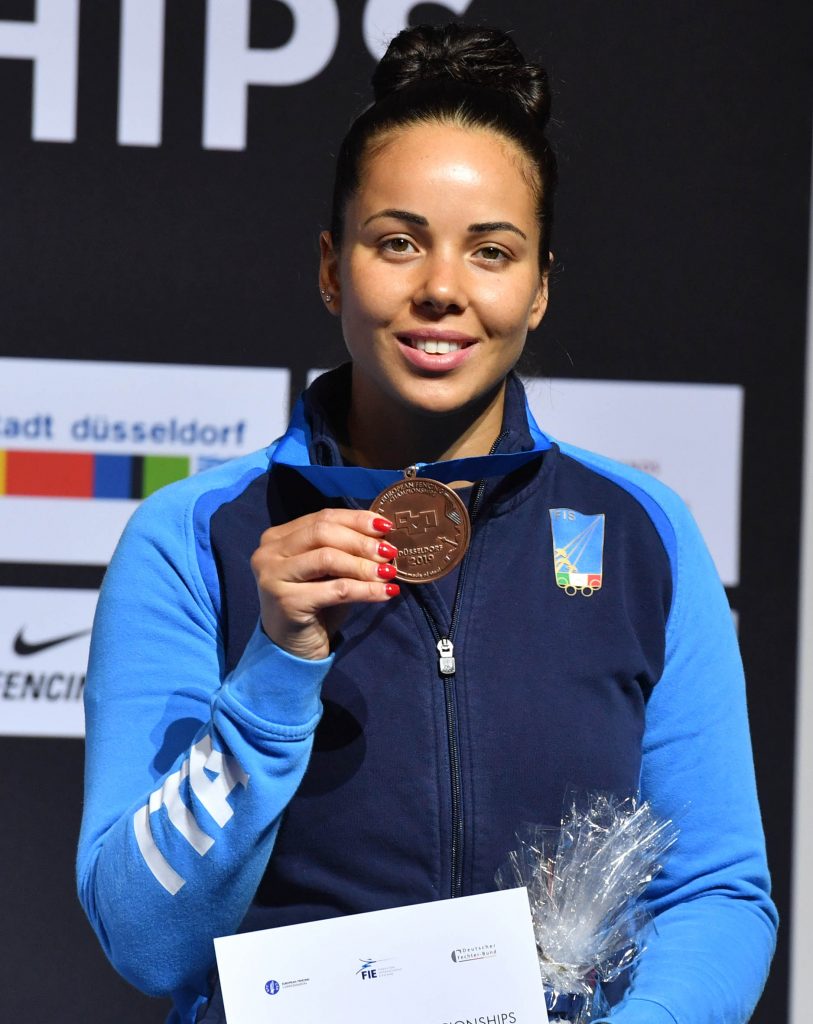 Nella stessa gara, di fioretto, si ferma sul terzo gradino del podio Alice Volpi che conferma il bronzo dello scorso anno conquistato a Novi Sad. Un vero peccato perché se avesse passato la semifinale avremmo avuto una finalissima tutta azzurra. Per lei la sconfitta è giunta per opera di Inna Deriglazova col punteggio di 15-11, al termine di un assalto condizionato da una condotta arbitrale assai contestata dalla delegazione azzurra. La campionessa del Mondo, dopo la fase a gironi senza sconfitte, aveva dapprima vinto per 15-7 il match contro la romena Malina Calugareanu e poi quello contro l’ungherese Aida Mohamed col punteggio di 15-6. Ai quarti aveva rimontato e vinto contro la polacca Martyna Dlugosz chiudendo sul 15-13 finale.