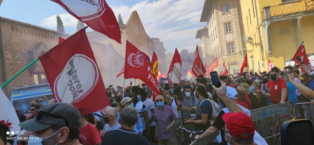 Oggi a fianco degli operai della GKN di Campi Bisenzio erano presenti tutte le istituzioni a partire dal sindaci del territorio, il presidente della Regione, i sindacati, una vecchia gloria del calcio fiorentino come Giancarlo Antognoni e associazioni, delegazioni dalle fabbriche, rappresentanti di partiti. Tutti in piazza a chiedere il ritiro dei licenziamenti, un sistema economico basato sui diritti, la legalità e il rispetto del lavoro. Non solo il distretto industriale fiorentino regione affiancava gli operai di GKN, persino la diocesi che con le bandiere rosse non ha mai avuto grande feeling, questa volta ha espresso in una nota la sua solidarietà e ha indetto una giornata di preghiera in tutte le parrocchie per i lavoratori licenziati.