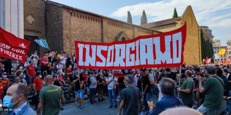 Grande manifestazione e sciopero questa mattina nel cuore di Firenze a sostegno della protesta degli operai di GKN licenziati con una mail dalla dirigenza, senza essere in condizioni di sofferenza.