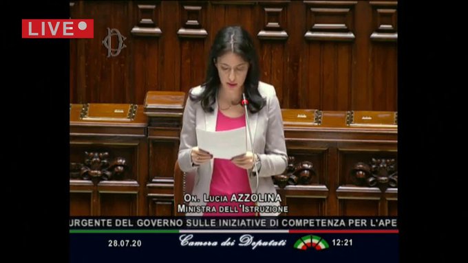 La ministra dell’Istruzione Lucia Azzolina, nel corso dell’informativa urgente alla Camera, a nome del governo ribadisce l’impegno alla riapertura delle scuole a settembre e garantisce “il diritto allo studio di tutte le alunne e tutti gli alunni“, oltre al fondamentale “diritto alla salute” di tutti colore che torneranno a frequentare gli istituti scolastici italiani.
