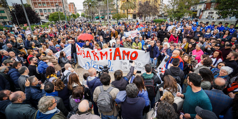 Un sit-in silenzioso,promosso dall’associazione ‘Un popolo in cammino’, con numerose adesioni e un solo striscione: “Disarmiamo Napoli”, contro ogni violenza.Tra i partecipanti una bambina di pochi anni, che reggeva un cartello scritto a mano con due sole parole di incoraggiamento per la sua coetanea in lotta per la vita: “Forza Noemi”.