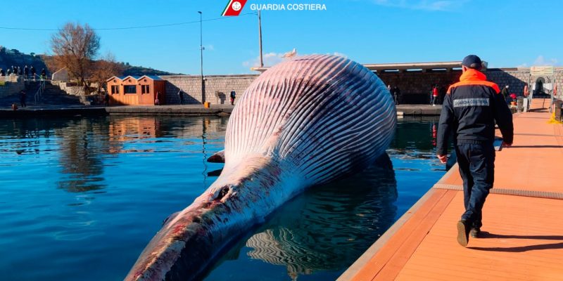 Il trasporto nel porto del capoluogo campano consentirà di dar corso all’esecuzione dell’esame necroscopico necessario ad individuare in maniera più approfondita le cause del decesso di quello che sembrerebbe uno dei più grandi esemplari di balenottera individuati nel Mediterraneo.
