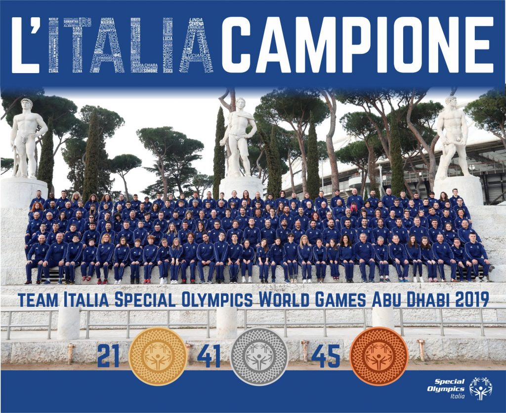Invito tutti a raccontarla ad altri questa esperienza, condividendo il più possibile le emozioni che avete provato. Non stancatevi mai di farlo. Solo così l’inestimabile valore di questo viaggio moltiplicherà arrivando a coinvolgere un numero sempre crescente di giovani e di potenziali atleti Special Olympics. Ci sono ancora tante persone con disabilità intellettive che non sanno di avere l’opportunità di fare sport, di migliorare sensibilmente la propria vita. Aiutateci a trovarle, a farle uscire di casa, a far loro scoprire in prima persona ciò che voi avete vissuto sulla vostra pelle. Scriviamo insieme la storia di tante famiglie e tentiamo – con tutte le nostre forze – di voltare pagina anche per loro perché il finale, voi lo sapete, può ancora cambiare e sorprendere. Vi lascio con il poster della delegazione italiana ai Giochi Mondiali Special Olympics, Abu Dhabi 2019. Sono certa che troverà spazio nelle vostre case. Nella mia l’ha già trovato.