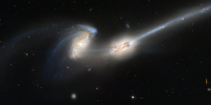 Molte sono le immagini di collisioni galattiche finora realizzate, ma, secondo Ajello, lui e i suoi colleghi sono i primi ad aver immortalato due galassie in via di fusione in cui c’è un getto completamente formato che punta verso di noi. “Con questo lavoro abbiamo assistito per la prima volta alla formazione di un getto relativistico, conseguenza di uno scontro tra due galassie a spirale“, afferma Marchesi, e prosegue “I getti sono composti da particelle che si muovono a velocità prossime a quelle della luce, e sono originati dai buchi neri massicci che si trovano nel centro delle galassie. Di solito questi oggetti sono così luminosi da rendere impossibile l’osservazione della galassia a cui appartengono: in questo caso, invece, il fatto che il jet fosse ancora giovane ci ha permesso di osservare l’interazione tra le due galassie“.