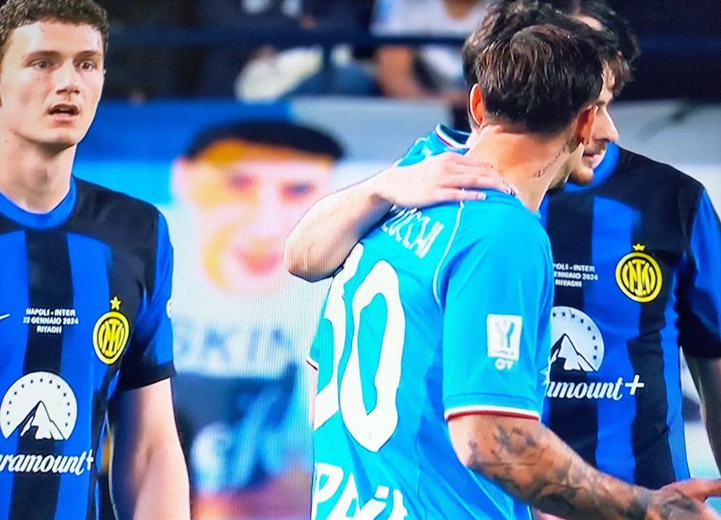 Nel secondo tempo gli equilibri tattici sono mutati, soprattutto grazie all’arbitro Rapuano, che ha cambiato registro e nell’arco di una decina di minuti ha usato il pugno di ferro, ed ha distribuito cartellini gialli praticamente ad ogni entrata fallosa, di entrambe le parti. A farne principalmente le spese, in maniera forse un po’ ingenua, è stato Simeone, il centravanti del Napoli che ha ricevuto un rosso (doppio giallo) intorno al 60′, lasciando cosi gli azzurri in dieci. Mister Mazzarri ha cercato riparo con alcune sostituzioni e modificando l’asseto della sua squadra. Il fortino partenopeo ha retto bene sino ai minuti finali, quando il forcing dell’Inter è stato premiato dal goal di Lautaro Martinez all’89’. Nei sette minuti di recupero non è più successo nulla e nella notte di Riad l’Inter ha potuto alzare la Supercoppa italiana al cielo e godersi il primo titolo della stagione. Tra le fila del Napoli questo epilogo ha suscitato malumore e recriminazione per non essersi potuto giocare le sue carte ad armi pari.