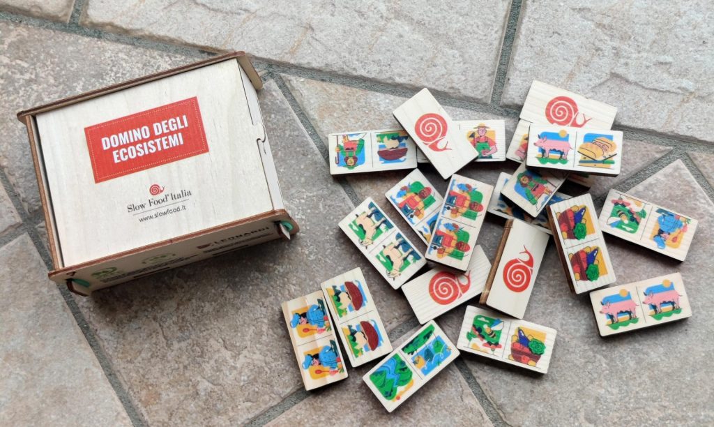 Il gioco, pensato da Slow Food e realizzato da Leonardi Wood con il legno (certificato FSC) ottenuto dalle piante abbattute dalla tempesta Vaia che nel 2018 ha spazzato il Triveneto, contiene le tesserine dei quattro ecosistemi: quello acquatico, le città, le terre alte (cioè colline e montagne) e le terre basse (ovvero le pianure).