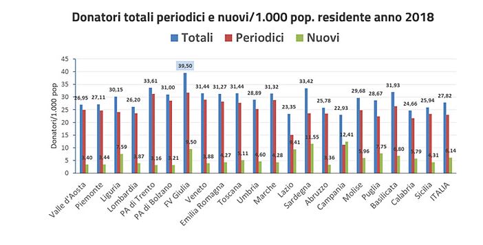 Se il dato complessivo è sostanzialmente positivo, continuano a preoccupare quelli parziali. I nuovi donatori sono poco più di 371mila, in calo comunque del 3,7%, mentre il 91,7% del totale è rappresentato da donatori iscritti alle associazioni di volontari. Sono in leggero calo anche i pazienti trasfusi, che nel 2018 sono stati circa 630 mila contro i 637 mila dell’anno precedente. In totale le trasfusioni effettuate durante l’anno sono state quasi 3 milioni. Nel 2018 sono stati comunque raccolti 840 mila chilogrammi di plasma, 4 mila in più rispetto all’anno precedente, pienamente in linea con gli obiettivi del Programma Nazionale Plasma. Per il sangue è stata garantita anche lo scorso anno l’autosufficienza totale, che per i derivati del plasma è circa al 70%.