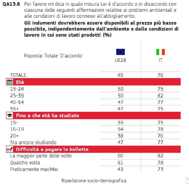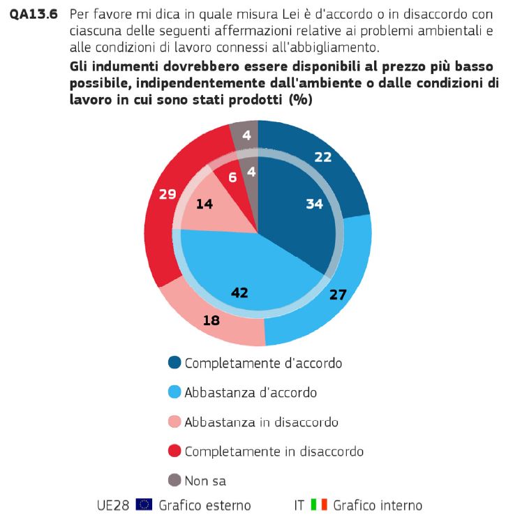 L’indagine prende in esame anche gli atteggiamenti nei confronti dell’industria dell’abbigliamento, riscontrando forti preoccupazioni per le questioni ambientali e le condizioni di lavoro. Gli intervistati vorrebbero indumenti in grado di durare più a lungo e fabbricati con materiali riciclabili.