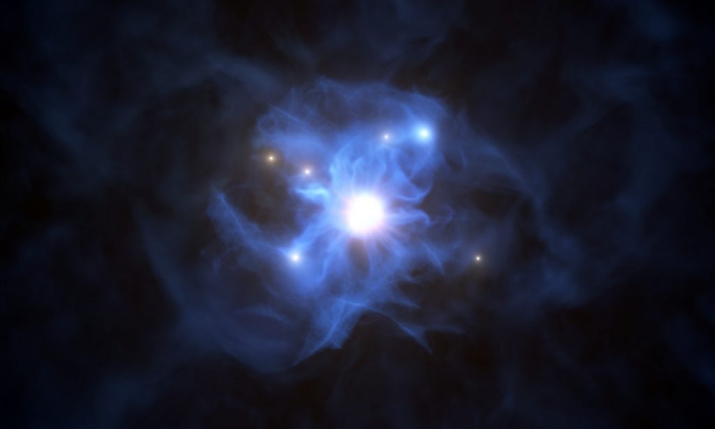 Ma neanche i buchi neri più “voraci” riescono a fagocitare tutto il materiale che li circonda, innescando giganteschi venti che buttano via parte del materiale e che possono propagarsi su scale galattiche. Da anni, gli astrofisici dibattono circa l’importanza di questi venti e dei loro possibili effetti sull’evoluzione delle galassie ospiti tramite meccanismi di azione-e-reazione (o feedback) che avrebbero la capacità di regolare sia la crescita del buco nero centrale che la formazione di nuove stelle.