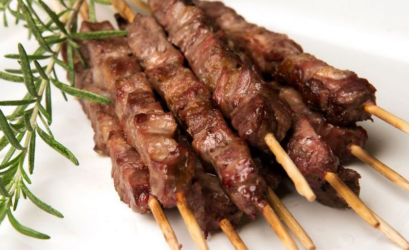 Gli arrosticini sono un secondo piatto tipico della tradizione culinaria abruzzese, soprattutto pescarese, ma conosciuti e apprezzati in tutta Italia e all’estero. Consistono in spiedini di circa 25-30 cm di carne di ovino (castrato o pecora), tagliata in piccoli cubetti di 1 cm per lato, e nascono dalla tradizione pastorizia della regione. La cottura tradizionale avviene sulla rostelliera, detta anche rustillire o furnacella, piccolo braciere dove è possibile rigirarli in modo pratico e veloce. A Pescara, il barbecue dove si cuociono gli arrosticini, si chiama lu cippone, dai ceppi con i quali si infilano gli arrosticini. Per prepararli a casa potete utilizzare una griglia in ghisa o anche la padella, oppure potete scegliere la cottura in forno. Di solito, la cottura sulla brace non prevede l’aggiunta di condimenti, ma c’è chi preferisce profumarli con del rosmarino bagnato in olio e pepe, oppure spolverizzarli con del peperoncino tritato.