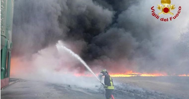 AVELLINO. Un violento incendio è divampato alla Igs, un’azienda insediata nel Nucleo industriale di Avellino che produce contenitori in plastica per batterie automobilistiche. Le fiamme si sono sviluppate poco dopo le 13.30 di ieri nel piazzale esterno all’azienda dove erano state stoccate le produzioni. Non ci sono notizie di feriti o intossicati. Un’alta nube nera, visibile da tutta la città, si è alzata, mentre numerose squadre dei vigili del fuoco da ore si stanno adoperando per domare le fiamme. Il denso fumo ha oscurato il cielo non soltanto ad Avellino ma anche ad Atripalda, Montefredane e Mercogliano. Sul posto  sono accorsi anche i tecnici dell’Arpac per valutare le sostanze tossiche rilasciate nell’aria e nell’ambiente circostante.