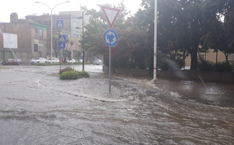 CAGLIARI. Un improvviso e violento nubifragio si è abbattuto su Cagliari e sull’hinterland.  Pioggia, accompagnata da forti raffiche di vento, lampi e tuoni in un cielo completamente nero. Le strade di Cagliari si sono velocemente riempite d’acqua e numerosi tombini sono saltati sia sul Lungomare Poetto che in altre zone della città. Chiuse in via precauzionale le aree dove si registrano gli allagamenti, come a Pirri, una delle zone più a rischio, dove sul posto sono già presenti gli agenti della polizia locale e la Protezione civile.